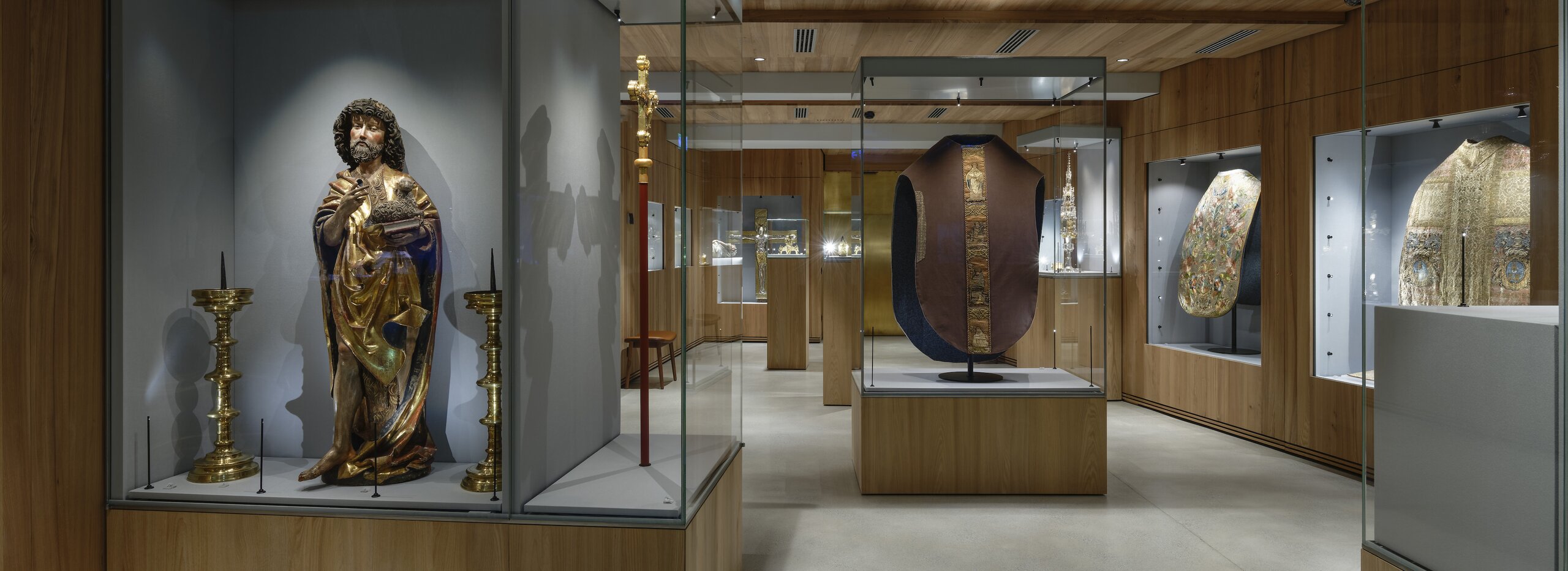 Freistehende Vitrinen, LED- und Glasfaser-Beleuchtung, Domschatzmuseum Chur